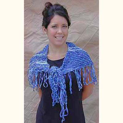 Knit One Crochet Too has matched 2 skeins of their fabulous Tartlet ribbon yarn with lengths of 7 other color coordinated adornment yarns from a variety of their collections to create a unique self-fringing scarf. You add the fibers in a random pattern of your choice for a one-of-a-kind, very stylish creation.